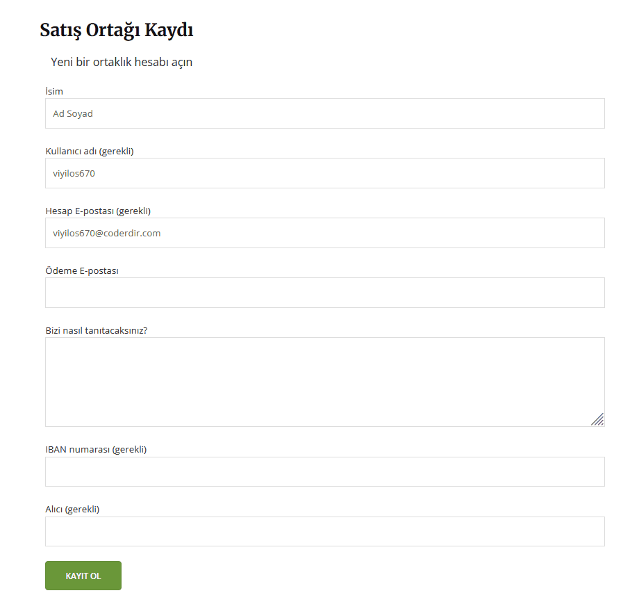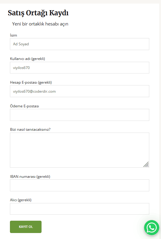 🔹 Adım 4: Satış Ortağı Başvuru Formunu Doldurun