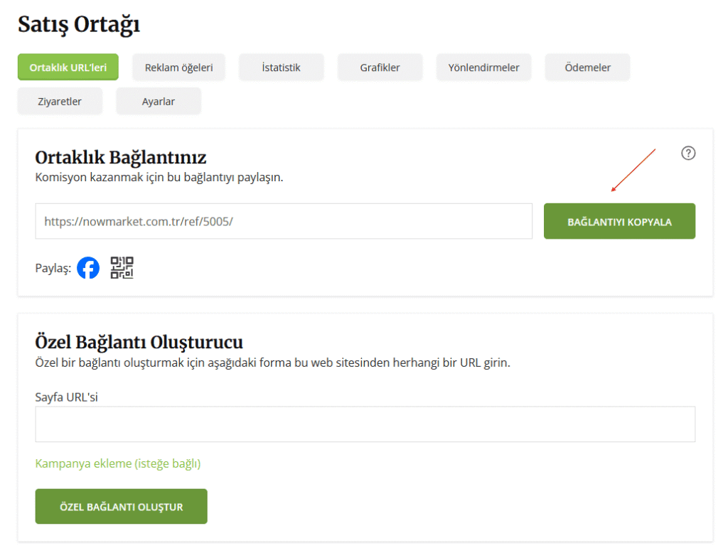 - Affiliate Paneli üzerinden size özel bağlantınızı görebilir ve kopyalayabilirsiniz.