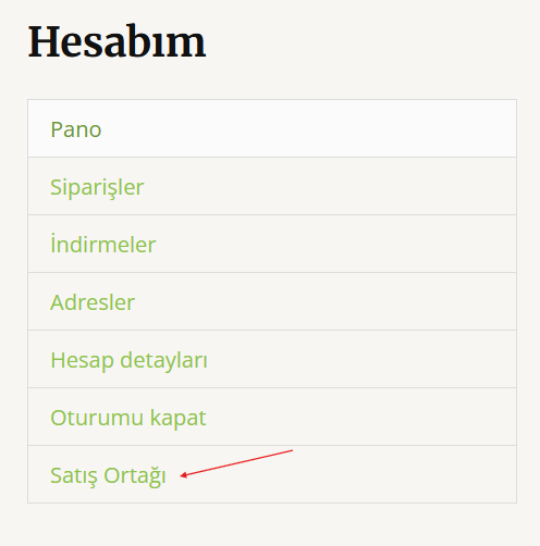 - Artık Hesabım menüsünde yer alan “Satış Ortaklığı” sekmesine tıklayarak affiliate (satış ortağı) panelinize erişebilirsiniz.