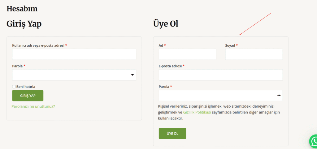 - Açılan sayfada Giriş / Kayıt formu görünecek.